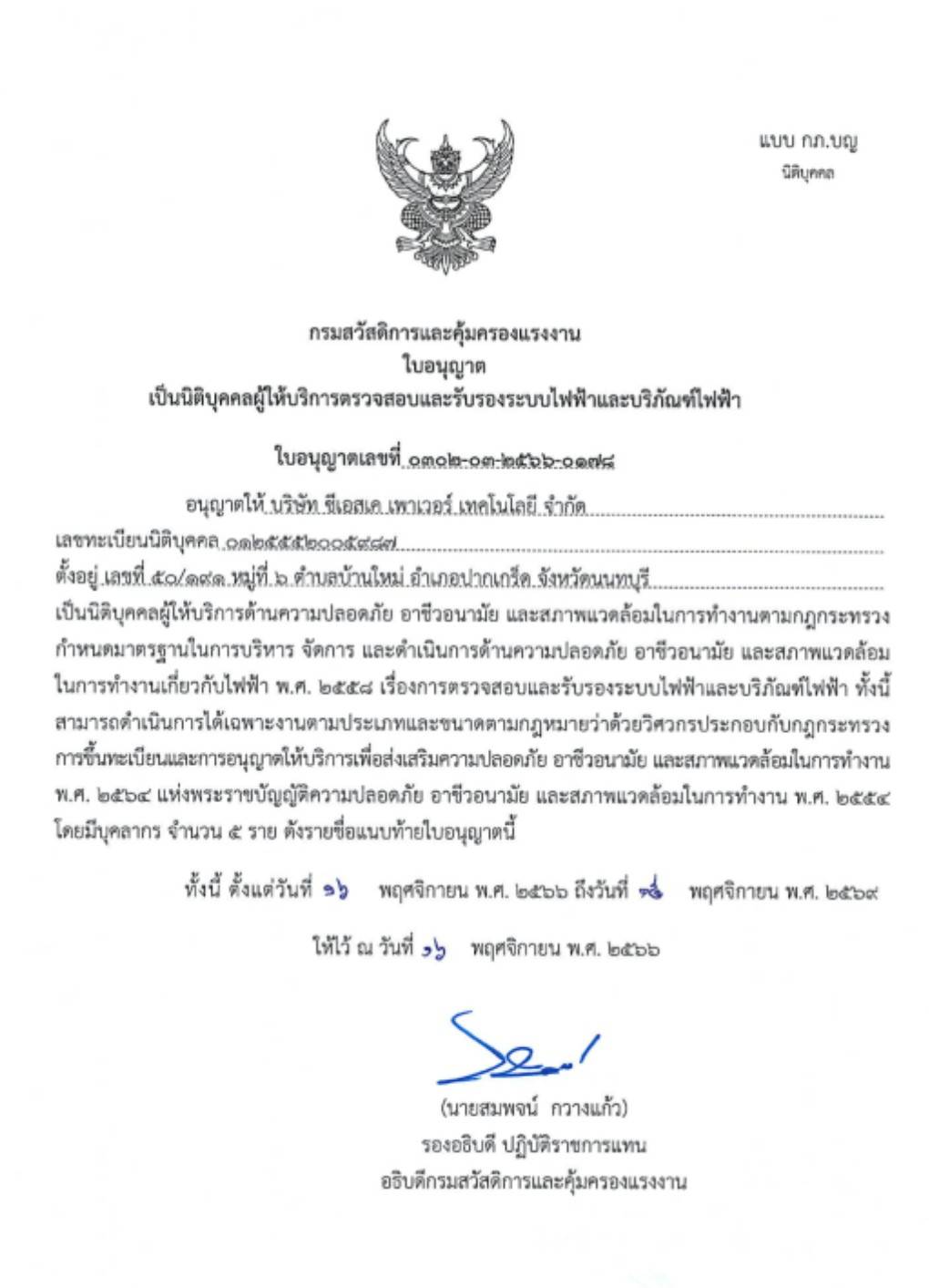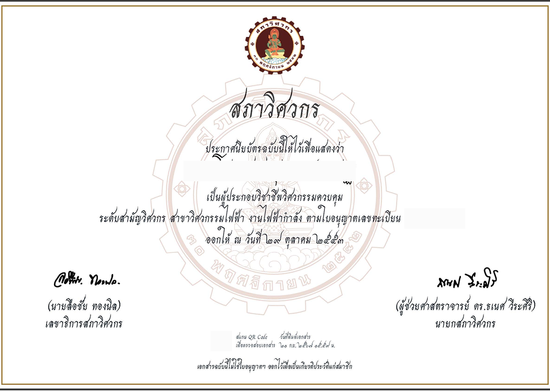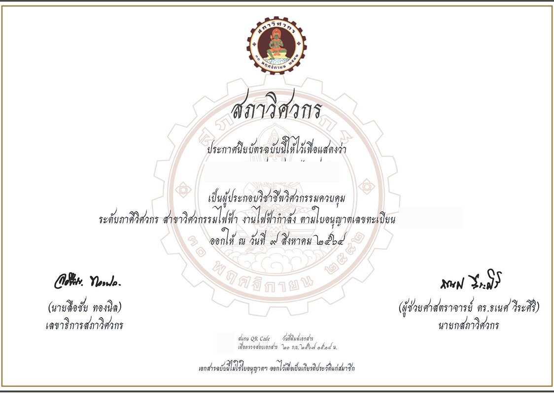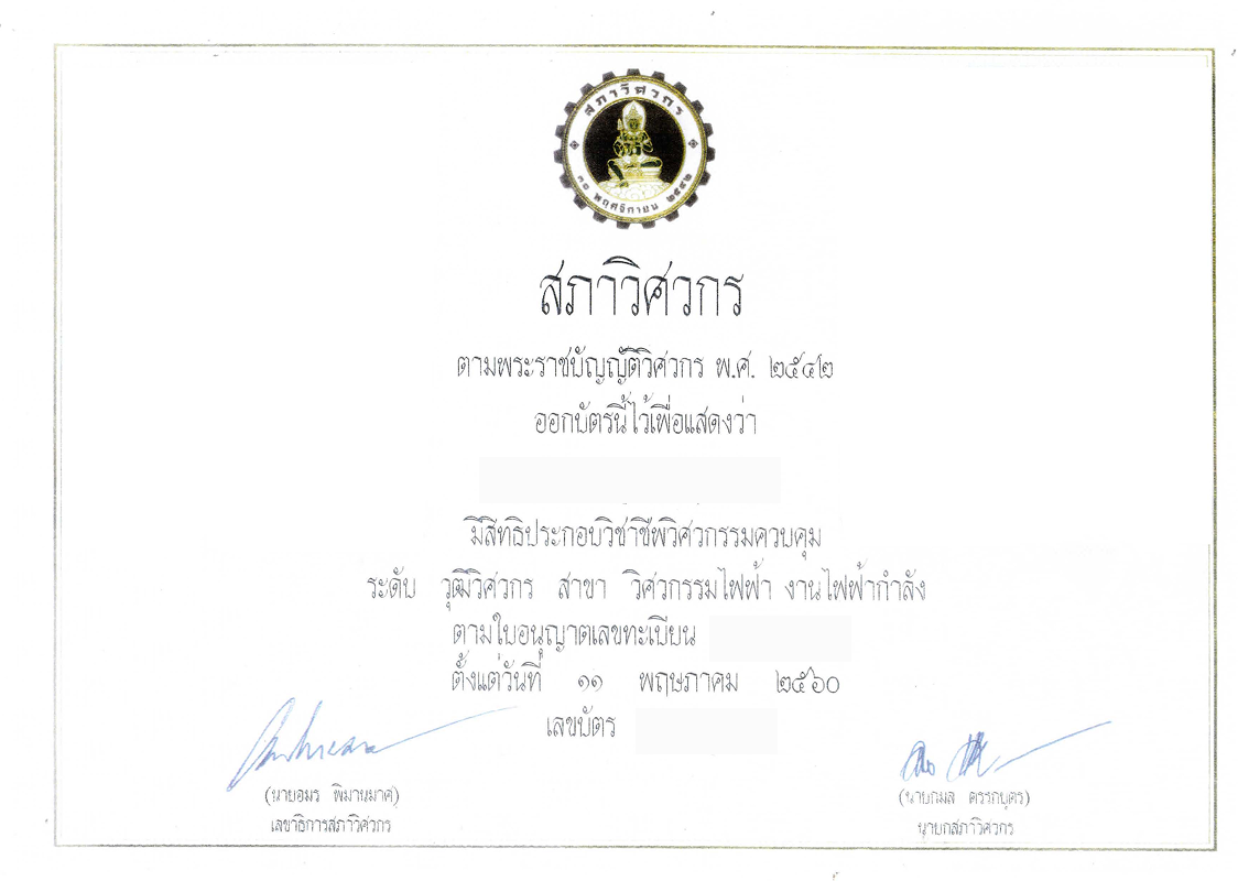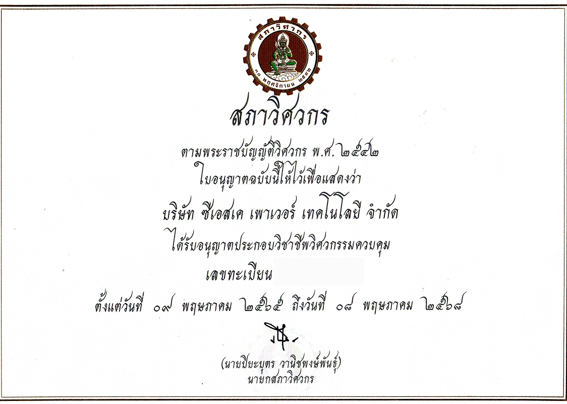 ใบอนุญาตและใบรับรองต่าง ๆ ที่บริษัทได้รับ ไม่ว่าจะเป็นมาตรฐานระบบบริหารคุณภาพ ISO 9001:2015, ระบบการจัดการสิ่งแวดล้อม ISO 14001:2015, ระบบอาชีวอนามัยและความปลอดภัย ISO 45001:2018 รวมถึงใบอนุญาตประกอบกิจการด้านวิศวกรรมไฟฟ้าจากหน่วยงานภาครัฐ ตลอดจนหนังสือรับรองการเป็นผู้รับเหมาและผู้ออกแบบระบบไฟฟ้า–ระบบประกอบอาคารจากองค์กรวิชาชีพชั้นนำ